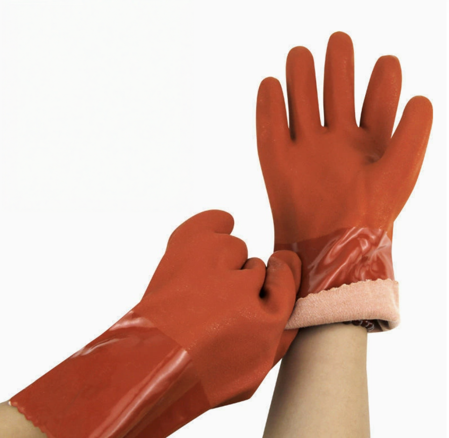 The dark green gloves feature a double-layer PVC-dipped flannel lining, ensuring comfort and reliability in demanding work environments. Their textured surface provides a non-slip grip, making them ideal for handling oily substances and chemicals.
