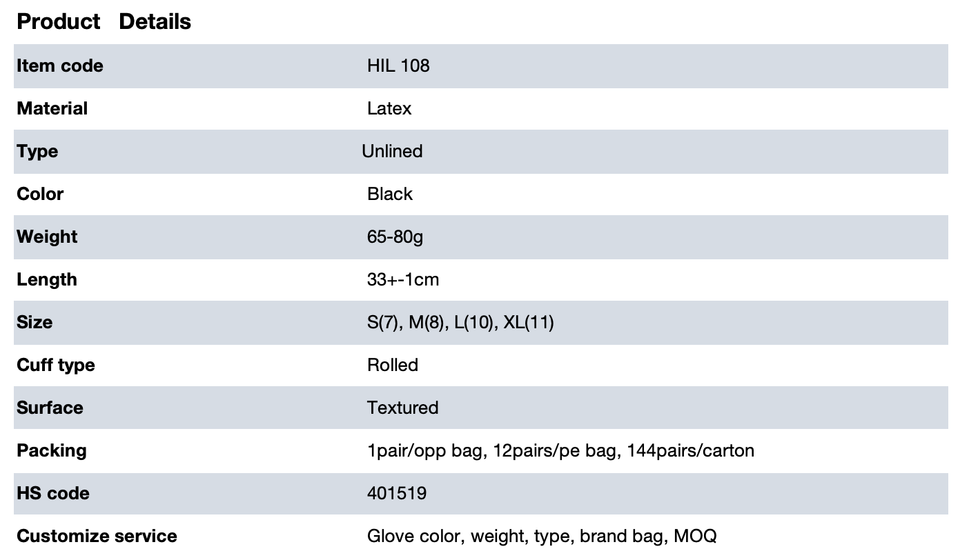 INDUSTRIAL BLACK LATEX GLOVES INNER WHITE - HIL 108