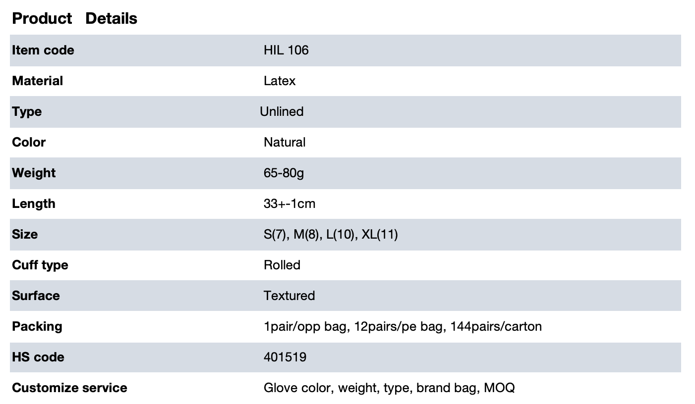 INDUSTRIAL NATURAL LATEX GLOVES INNER UNLINED - HIL 106