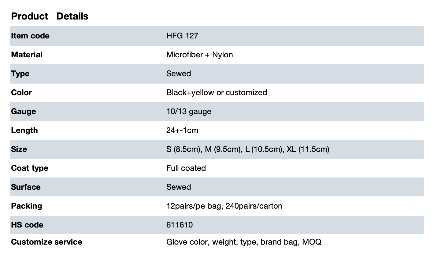 Ultra-Fiber Fabric Gloves /High-strength micro ultra-fiber composite main body (customizable solid colors available) + elastic knitted snug wrist + reinforced seamless stitching at palm and fingers /Wear-resistant, tear-proof and durable, far superior to ordinary cotton gloves in service life /Soft and skin-friendly texture, no hard feeling, comfortable for long-time continuous operation /Outstanding breathability and moisture wicking, reduces hand stuffiness and sweat accumulation /Lightweight and flexible structure, high fit to hand shape, flexible gripping and fine operation /Strong anti-slip performance on palm surface, stable holding of tools, parts and finished products /Resistant to dirt and easy to clean, washable and reusable, cost-effective for long-term use /Ambidextrous universal design, easy to wear and replace, suitable for mass use /EU Compliance: CE certified, EN388 tested for mechanical protection (abrasion, tear, puncture and basic cut resistance)