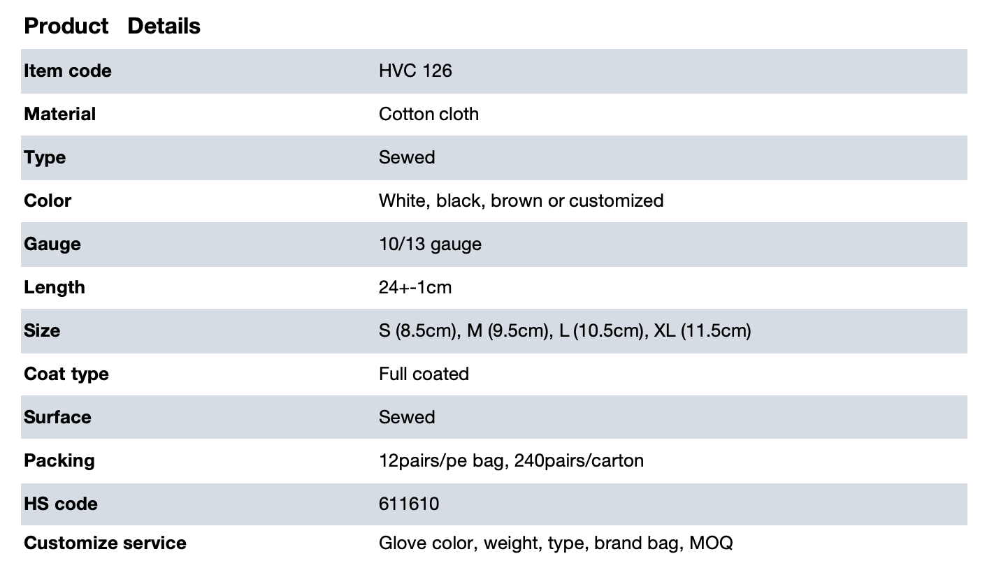 Canvas with PVC dotted work gloves /Breathable combed cotton main body (natural white/bleached white/custom dyed colors) + elastic knitted wrist closure + reinforced palm & finger stitching /High-density pure cotton fabric, soft against skin with long-wearing comfort /Excellent sweat absorption & air permeability, suitable for long hours of daily work /Lightweight flexible construction, fits hand contour, no restraint when gripping small parts & operating tools /Reinforced stress points at palm, fingertips and thumb crotch, enhances tear & abrasion resistance, extends service life /Universal ergonomic fit for both left and right hands, ambidextrous design for easy use /Washable & reusable, low maintenance cost, economical for bulk daily use /EU Compliance: CE certified, EN388 tested for mechanical protection (basic cut, abrasion, tear resistance)