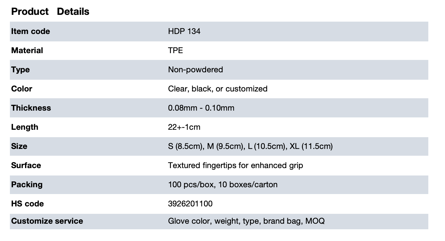 DISPOSABLE TPE GLVOES-HDP 134