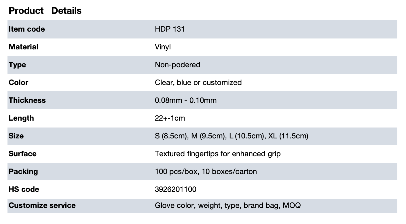 DISPOSABLE VINYL EXAMINATION GLOVES- HDP 131