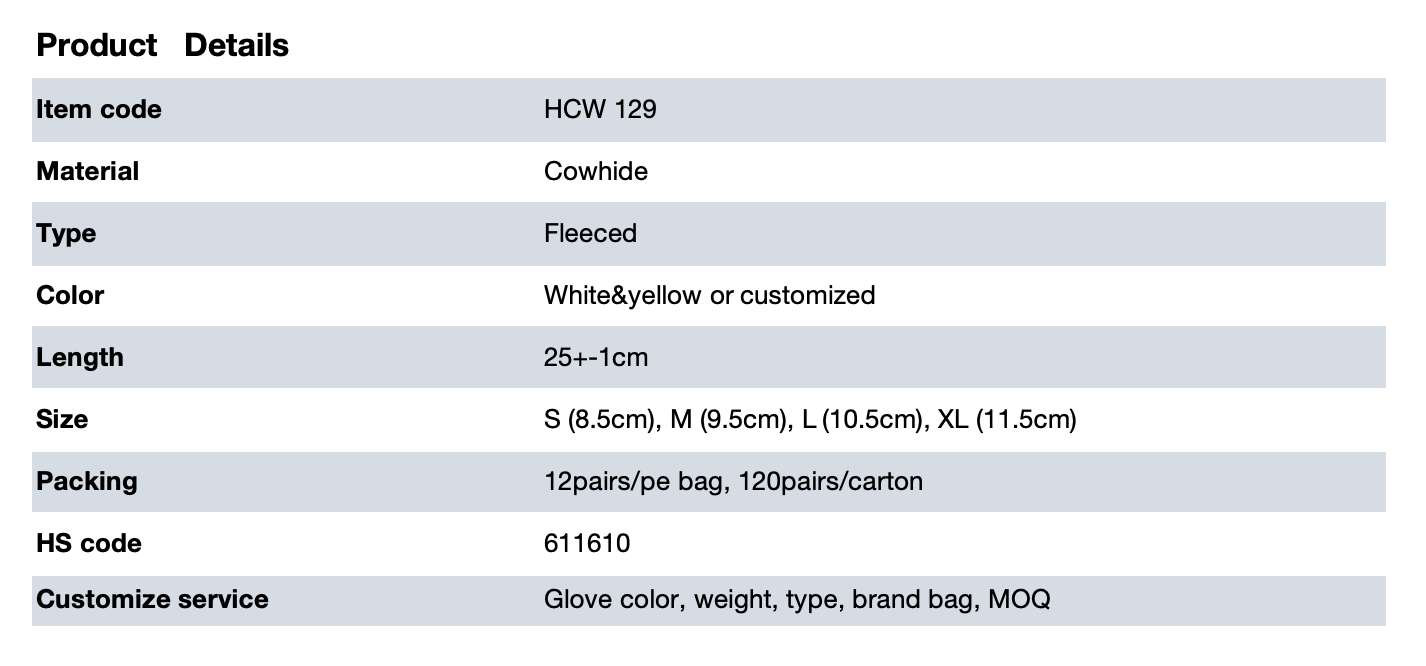 Cow Split Leather Safety Gloves are engineered for versatile applications ranging from gardening to welding /Constructed from robust cowhide leather with a soft fleece lining, they deliver reliable hand protection across various working conditions /Offered in multiple sizes (S, M, L, XL) and a high-visibility yellow finish, the gloves can be personalized with your branding /Compatible with both MIG and TIG welding processes /Ensure adaptability and dependable performance for diverse operational needs /Soft fleece lining enhances comfort and breathability /Heat-resistant lining protects against sparks and spatter/Reinforced stitching in critical areas for extended durability