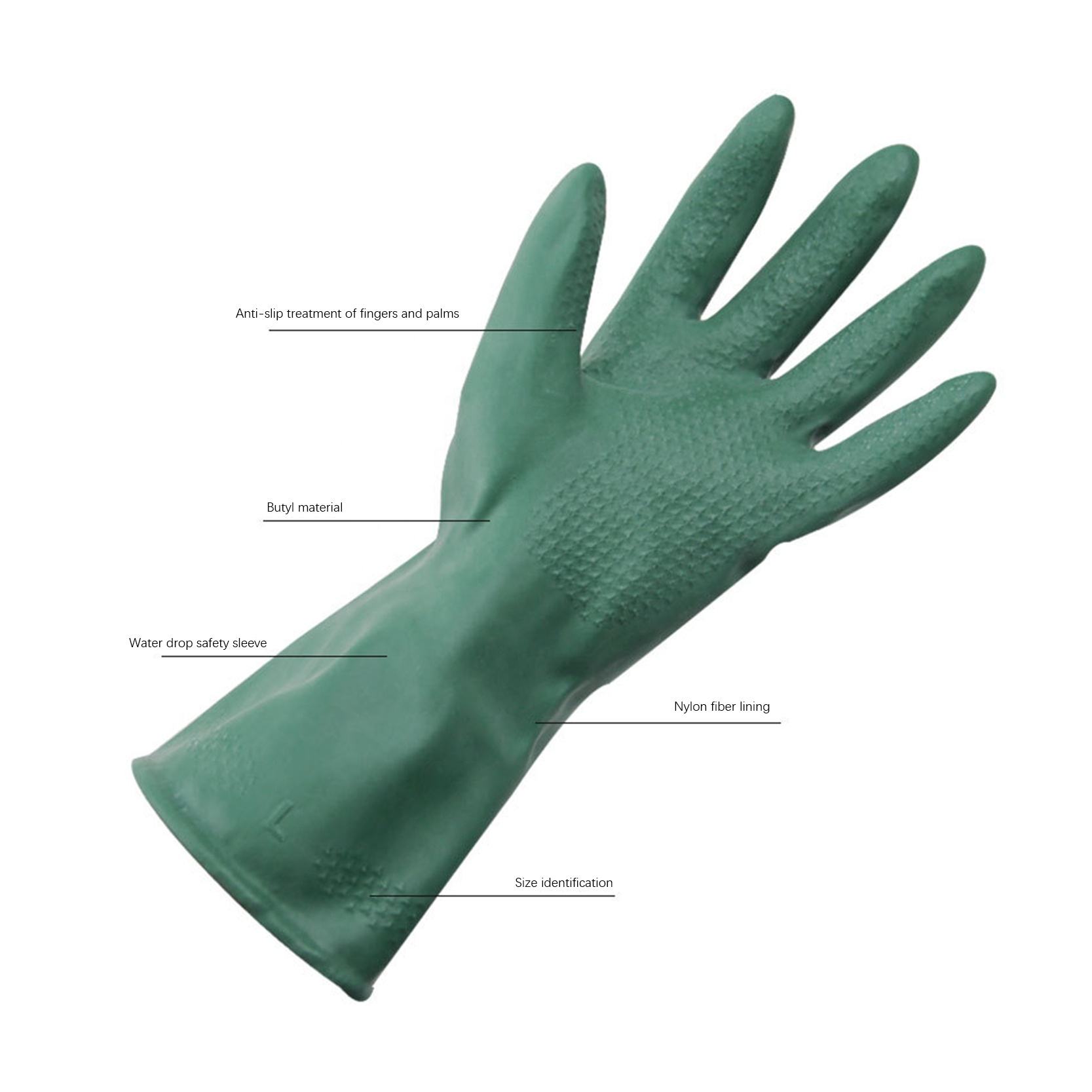 Hyflex butyl chemical-resistant gloves provide reliable protection against a wide range of toxic chemicals; double-dipped construction enhances safety performance; offers strong resistance to salts and detergents.