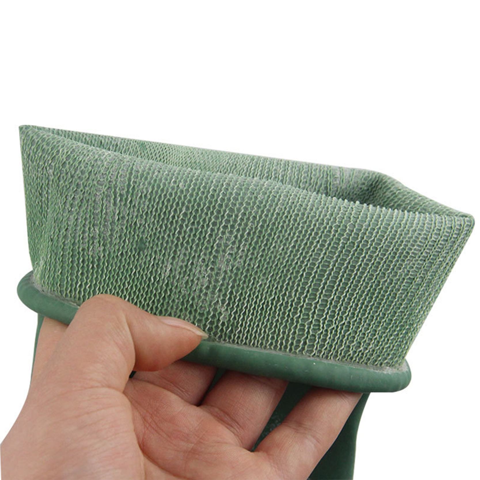 This heavy-duty glove features a non-skeletonized design with a raised diamond pattern surface; it is tough and durable, offering excellent wet and dry grip performance; high-quality cotton flocking lining helps reduce skin irritation; AQL 0.65 (EN374);